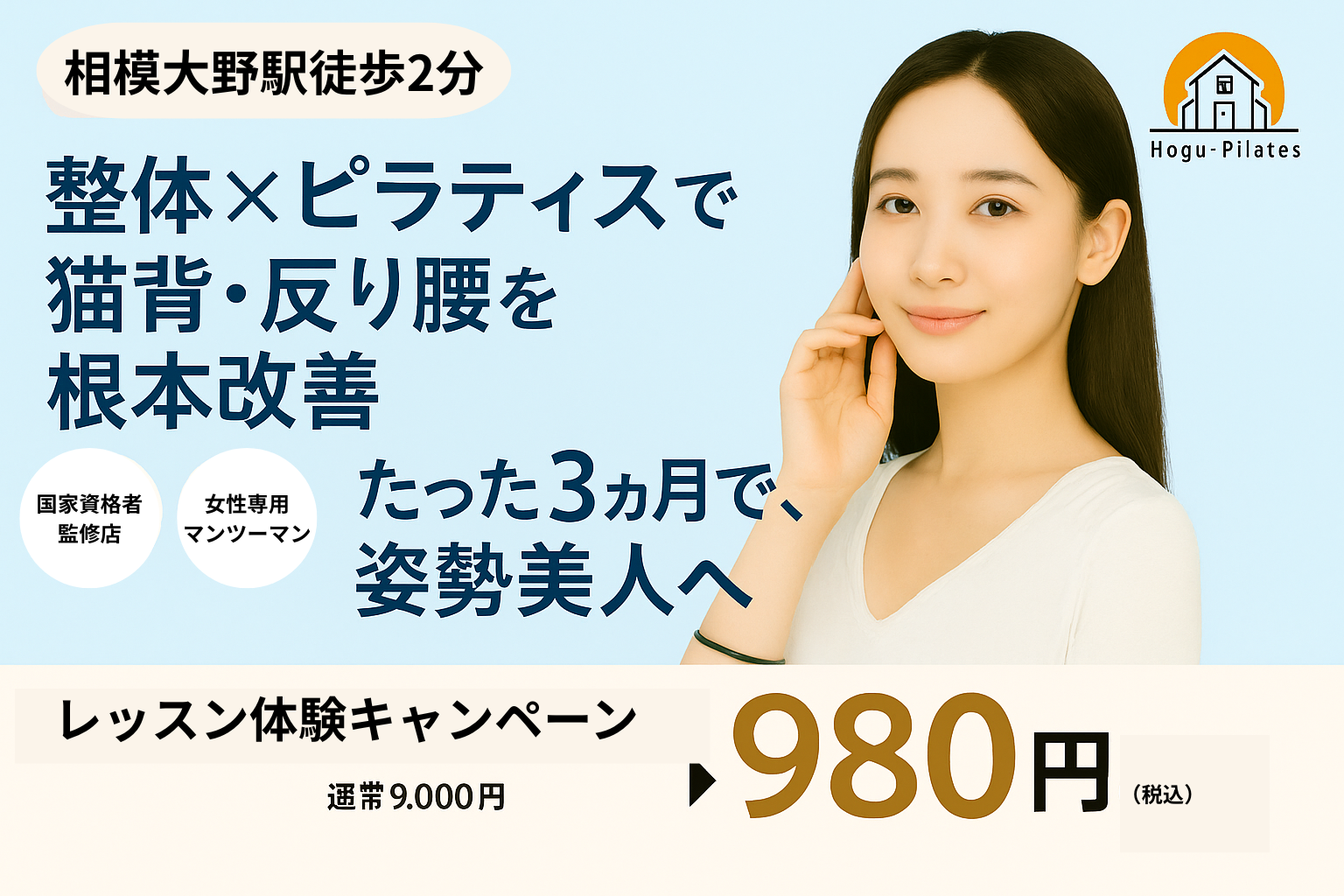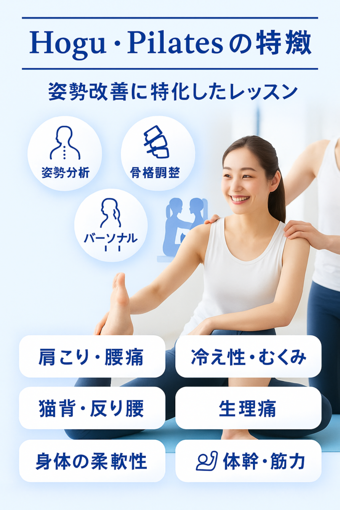 Hogu・Pilatesなら、専門的な指導 × マシンピラティスで、あなたの理想の姿勢へ導きます。
